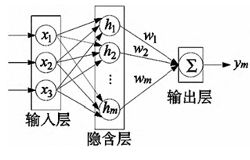 径向基函数(Radial basis function,RBF)神经网络是一种三层前馈网络,由输入层、隐含层和输出层组成。其核心思想是通过非线性映射将输入空间转换到高维空间,然后在高维空间中实现线性可分或函数逼近。