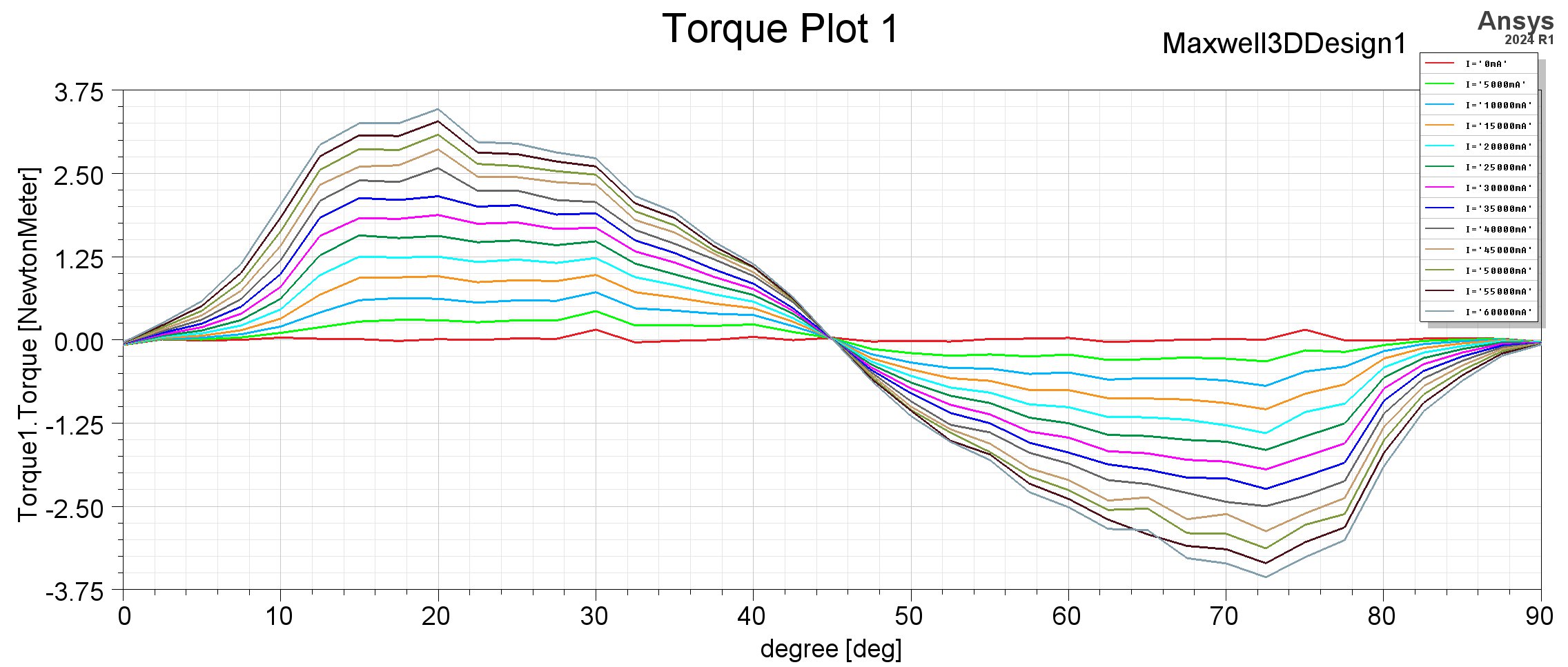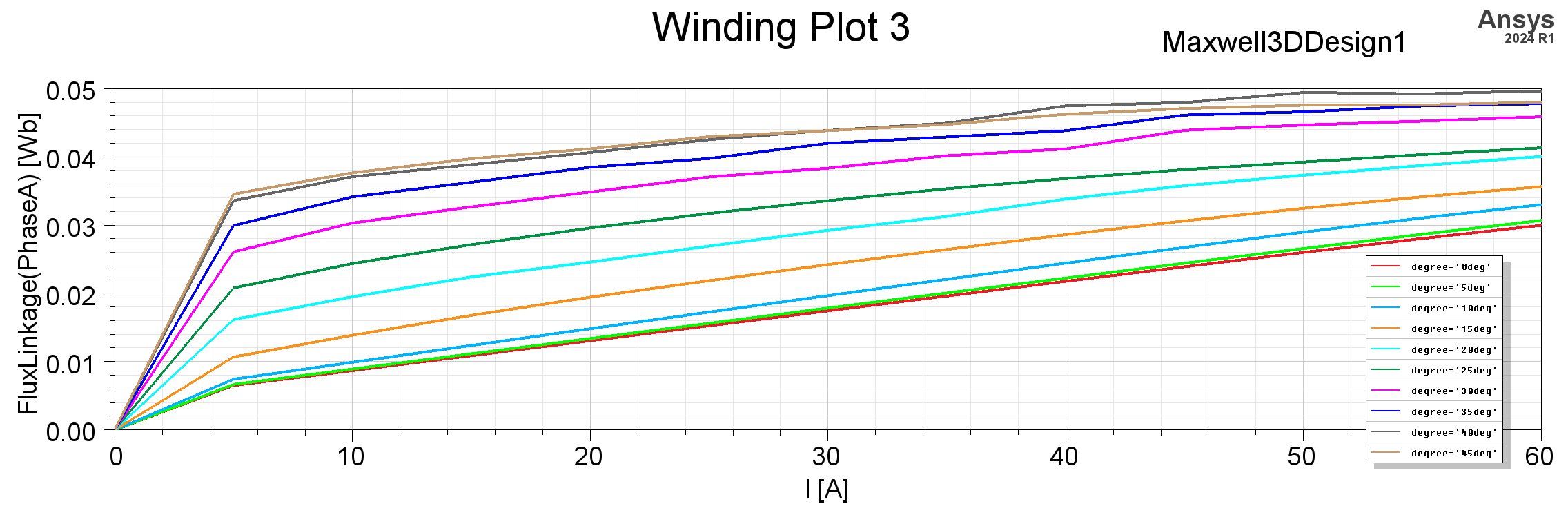生成的图像如下所示,可以观察到0至45度范围内磁链随着角度的增加而增加。