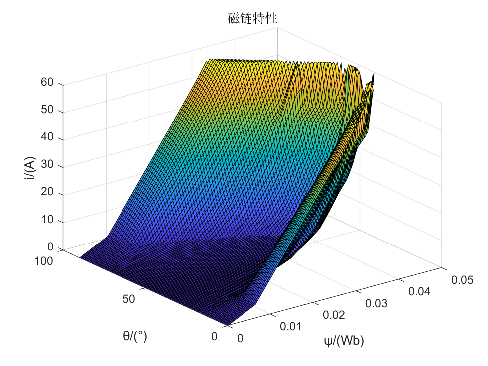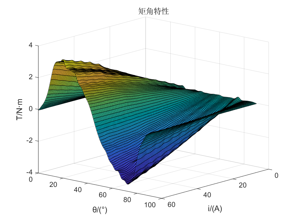 下面介绍使用Matlab绘制转矩特性与磁链特性曲面的方法。该曲面可以绘制到论文中,更加直观的体现三个变量间的关系。
