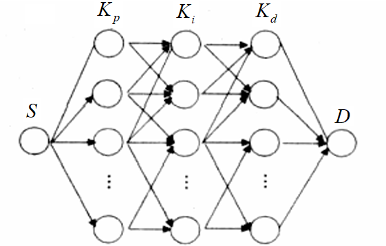 信息素并不释放在路径上,而是在节点上,而节点就是待优化的\(K_p,K_i,K_d\)参数。